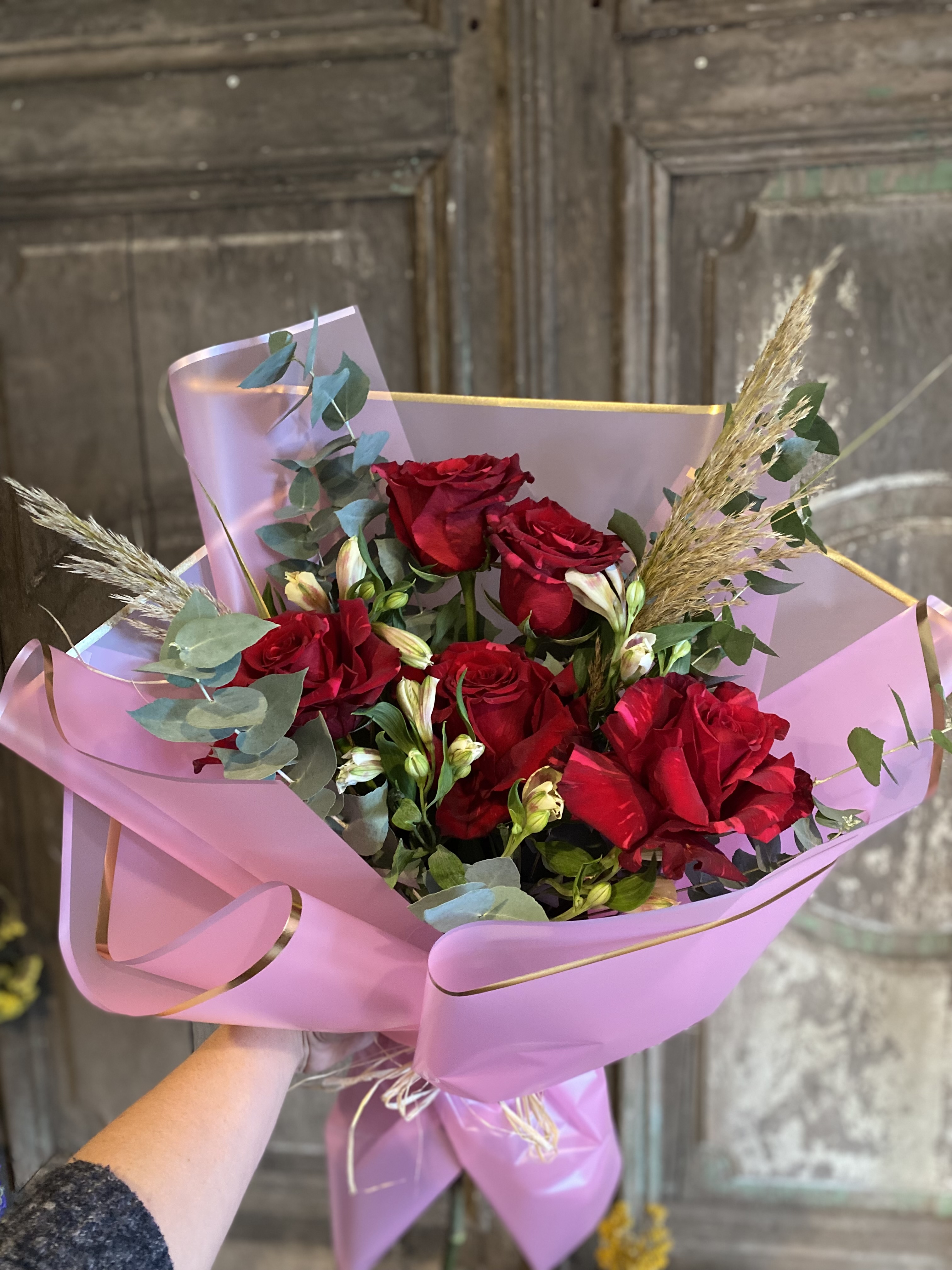 Descubre nuestro encantador Ramo Entrega M, que consta de 5 elegantes rosas rojas y acompañamientos florales. Este ramo es ideal para expresar amor, admiración o gratitud en cualquier ocasión especial. Su diseño único y colorido lo diferencia de otros productos, haciendo de cada entrega un momento memorable.