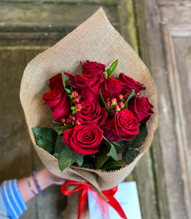 Descubre nuestro hermoso ramo de 10 rosas rojas e hipericum, diseñado especialmente para enamorar y encender la pasión en esa persona especial que aprecia los toques rústicos. Este elegante y romántico arreglo combina la belleza clásica de las rosas rojas con la frescura del hipericum, creando un regalo único que transmite amor y emoción.
